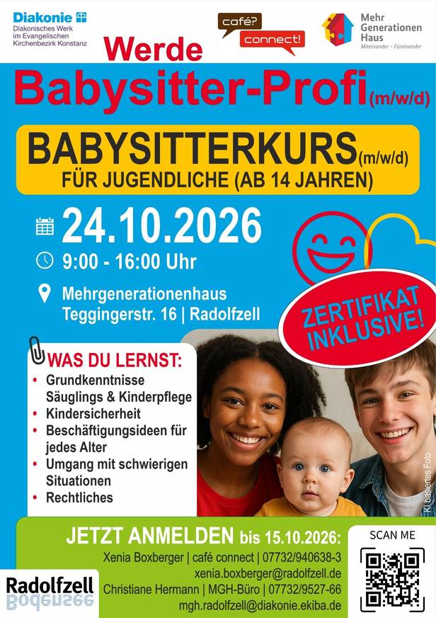 Das Mehrgenerationenhaus und das café connect bieten in Kooperation am einen Babysitterkurs mit Zertifikat für Jugendliche ab 14 Jahren an.